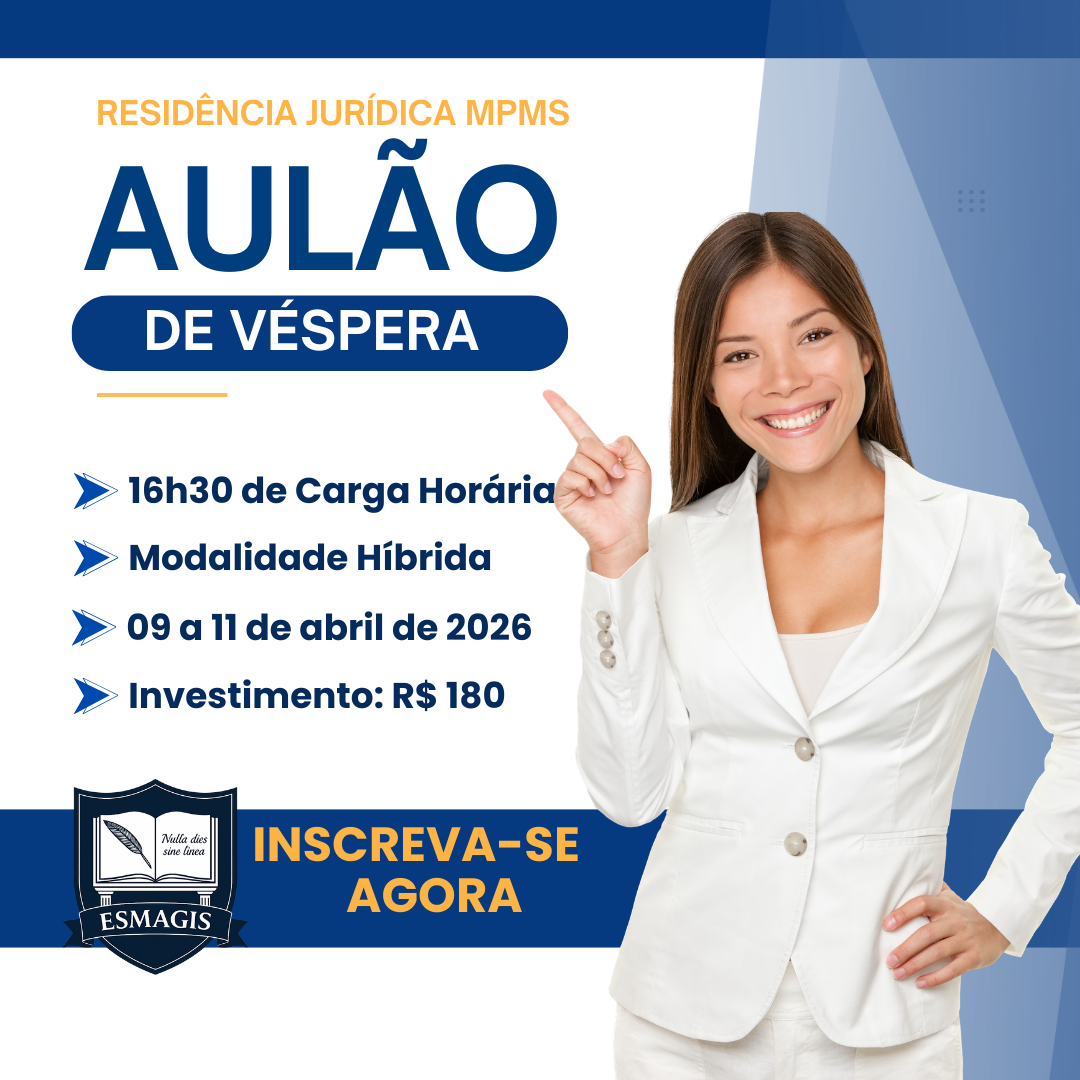 O Aulão de Véspera ESMAGIS – MPMS foi cuidadosamente estruturado para proporcionar uma revisão objetiva, direcionada ao edital e focada nos temas de maior incidência, otimizando seu tempo de estudo e potencializando seus resultados.